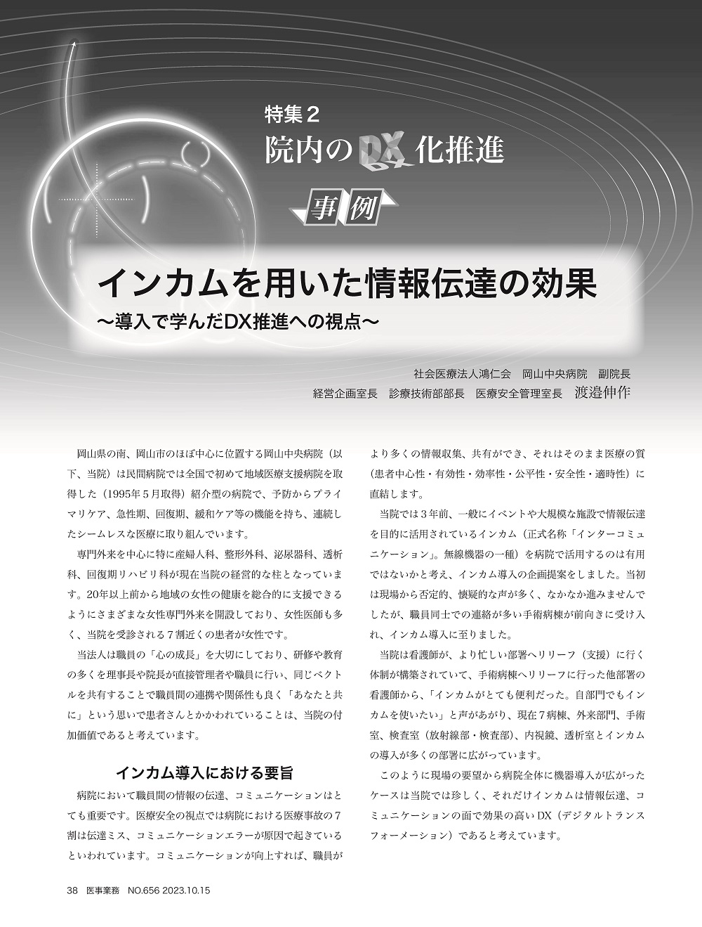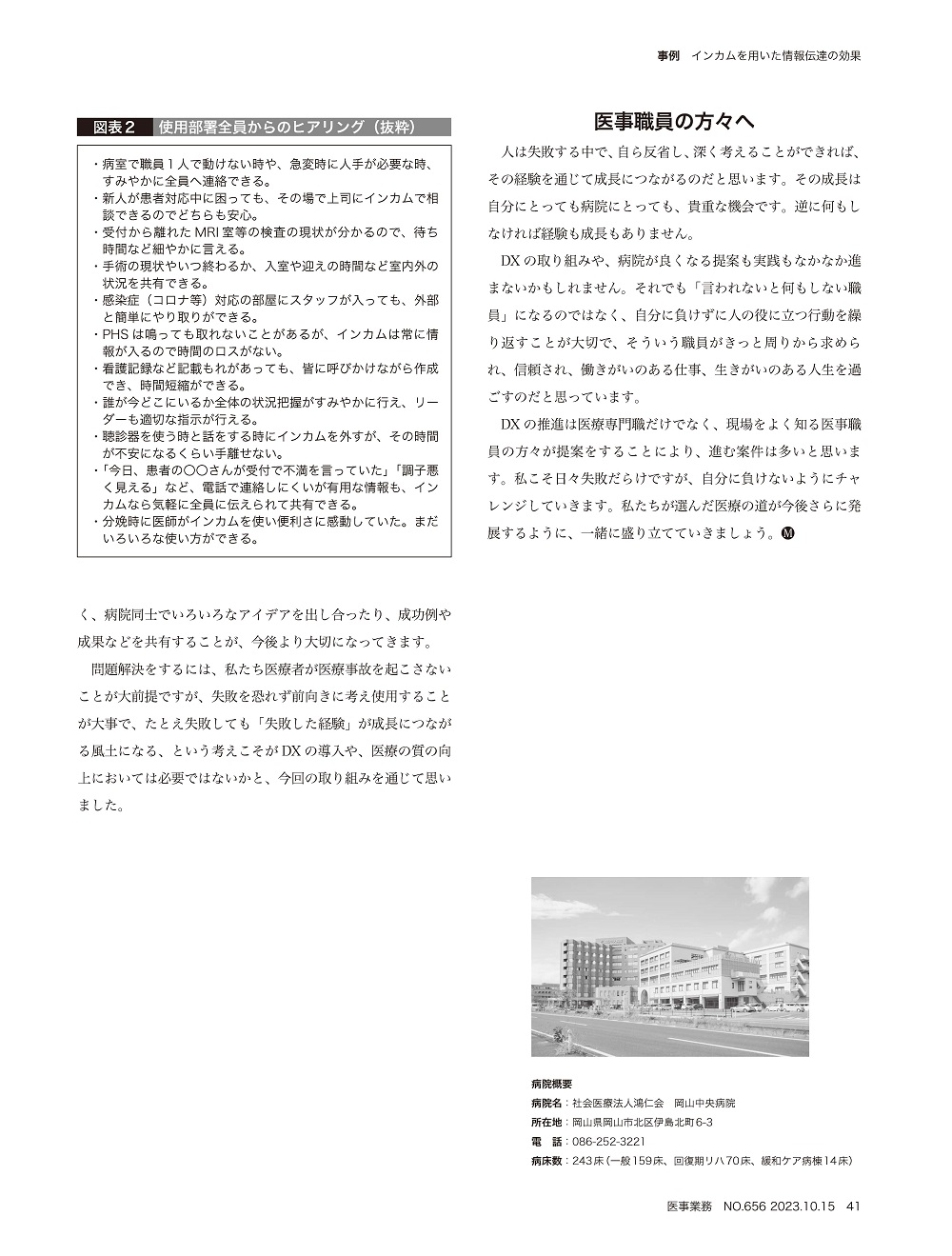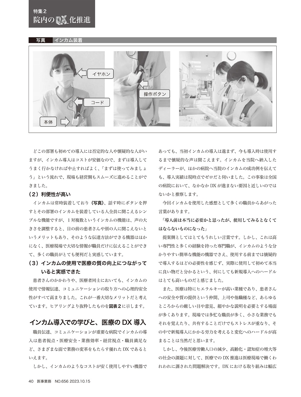 特集2 院内のDX化推進 事例 インカムを用いた情報伝達の効果